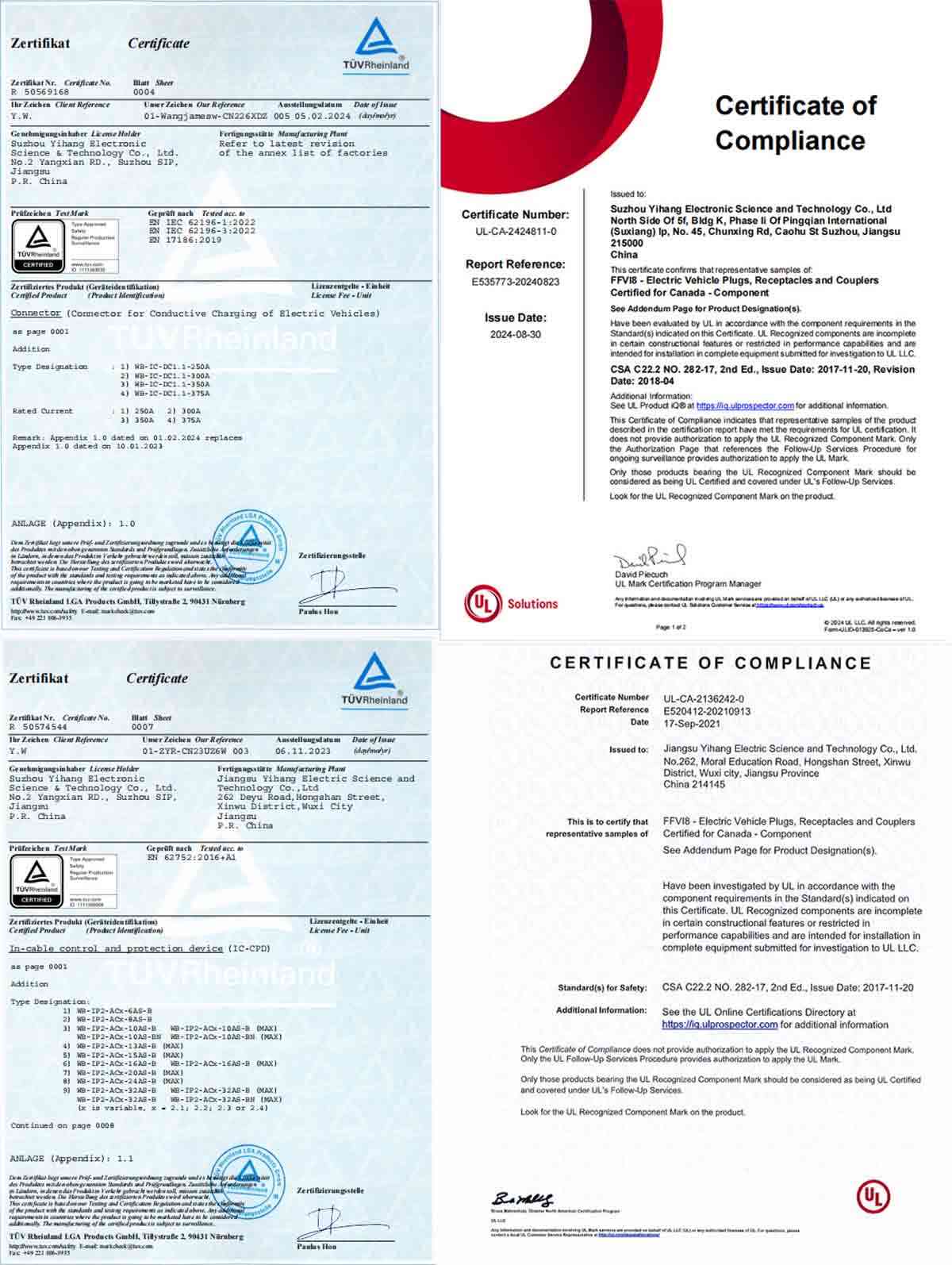 • Sertifikasyon erişimi: Teklifleri ve onayları desteklemek için temel konnektörler (örneğin NACS DC, CCS2) için genel UL/TÜV/CE referansları ve indirilebilir sertifikalar.